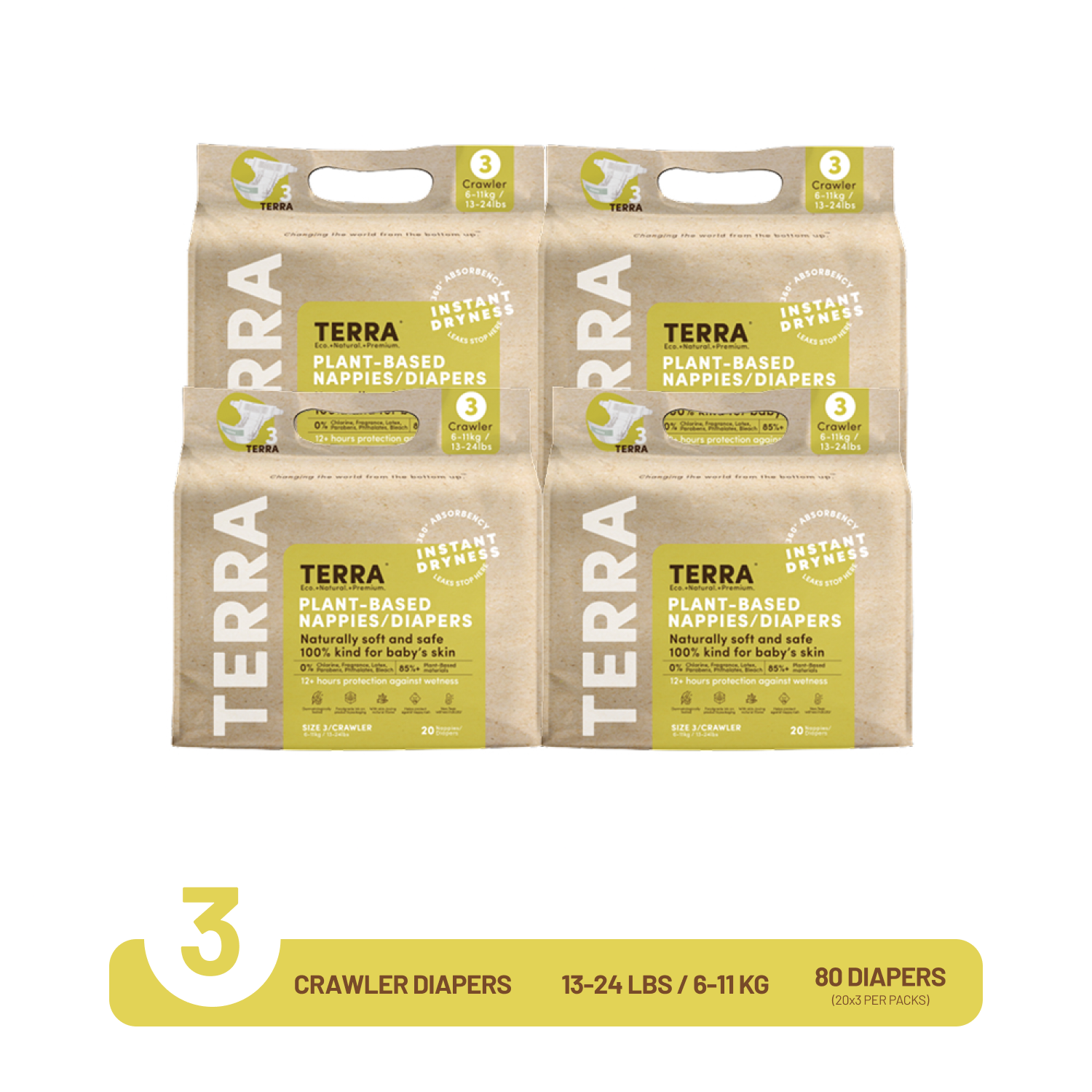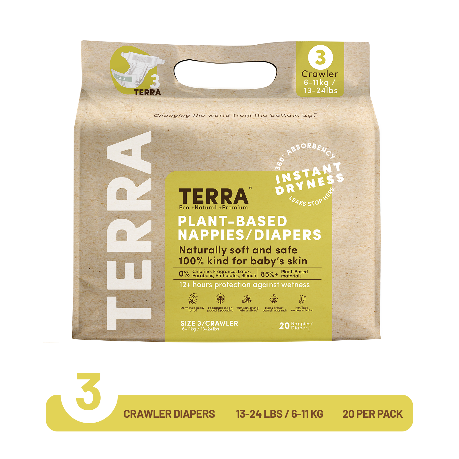 When your little one enters the world, Terra 85% Plant-Based Diaper are right there to protect their soft, delicate skin from day one.